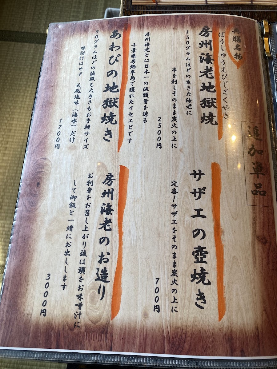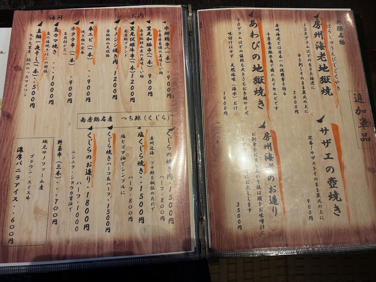 The menu at Hidden Yashiki Tenzen leaves a lasting impression with its thoughtful balance of seasonal ingredients and refined presentation, offering a deeply satisfying culinary journey. Highlights such as 串焼きの盛合せ showcase expertly grilled skewers with a delicate smokiness, while premium seafood selections like アワビ 伊勢海老 and 房州海老 emphasize the restaurant’s commitment to freshness and regional excellence. The meal often begins gracefully with 前菜 みねおかどうふ, a silky, subtly sweet tofu that sets a refined tone, followed by comforting dishes like 炊き合わせ, where simmered vegetables are harmonized with light yet flavorful broth. Rice offerings such as 麦とろご飯 provide a wholesome, earthy complement to the richer dishes, while 焼きおにぎり adds a nostalgic, crispy touch. Seafood lovers will appreciate the clean, delicate flavors of わかし刺身, and the inclusion of 嶺岡豆腐 further reflects the restaurant’s respect for traditional textures and tastes. To conclude, 黒糖寒天 delivers a gently sweet finish, rounding out the experience with understated elegance. Overall, the menu feels cohesive and carefully curated, blending local specialties with classic techniques to create a memorable dining experience that is both comforting and sophisticated.